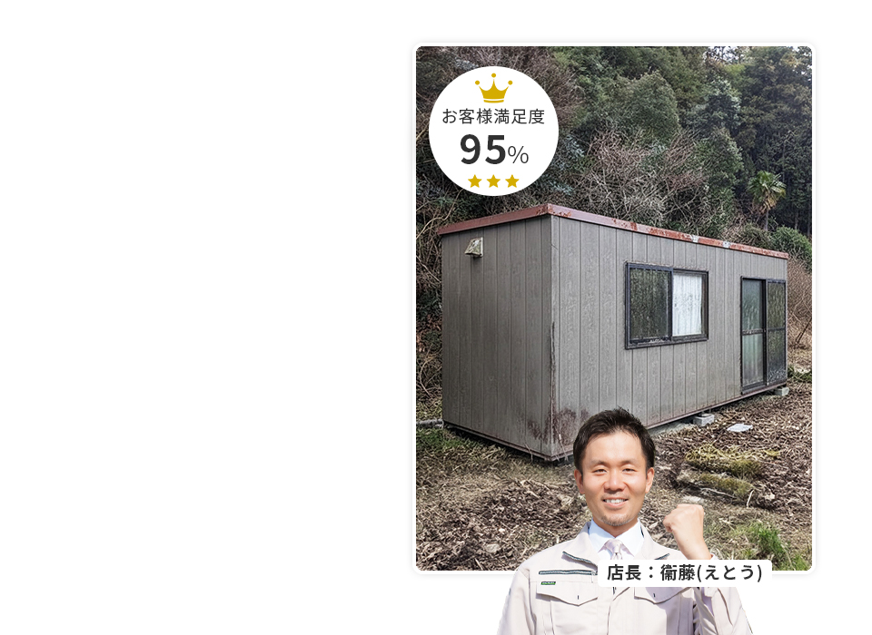 プレハブ撤去は「いくらかかるのか分からない」と不安になりがちです。当社では現地で状態を確認し、作業内容と処分費を含めて内訳が分かる見積をご提示します。必要な範囲を整理したうえで無理な追加提案はせず、納得してから進められる体制を徹底しています。